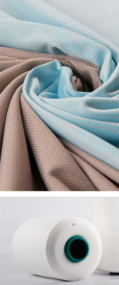 錦綸導熱系數為0.244-0.337,而滌綸是0.084,因此錦綸織物就感覺涼爽,而滌綸就感覺溫熱;粘膠素來有冰絲之稱,主要因為它滑爽、垂感、吸濕,其長絲織物給人穿著有涼爽的感覺。因此,將錦綸與粘膠合并后,涼感更加明確。
