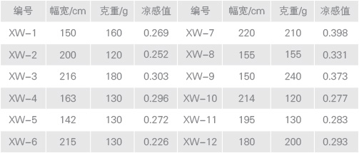 具體產品,其冷感值列示如下: